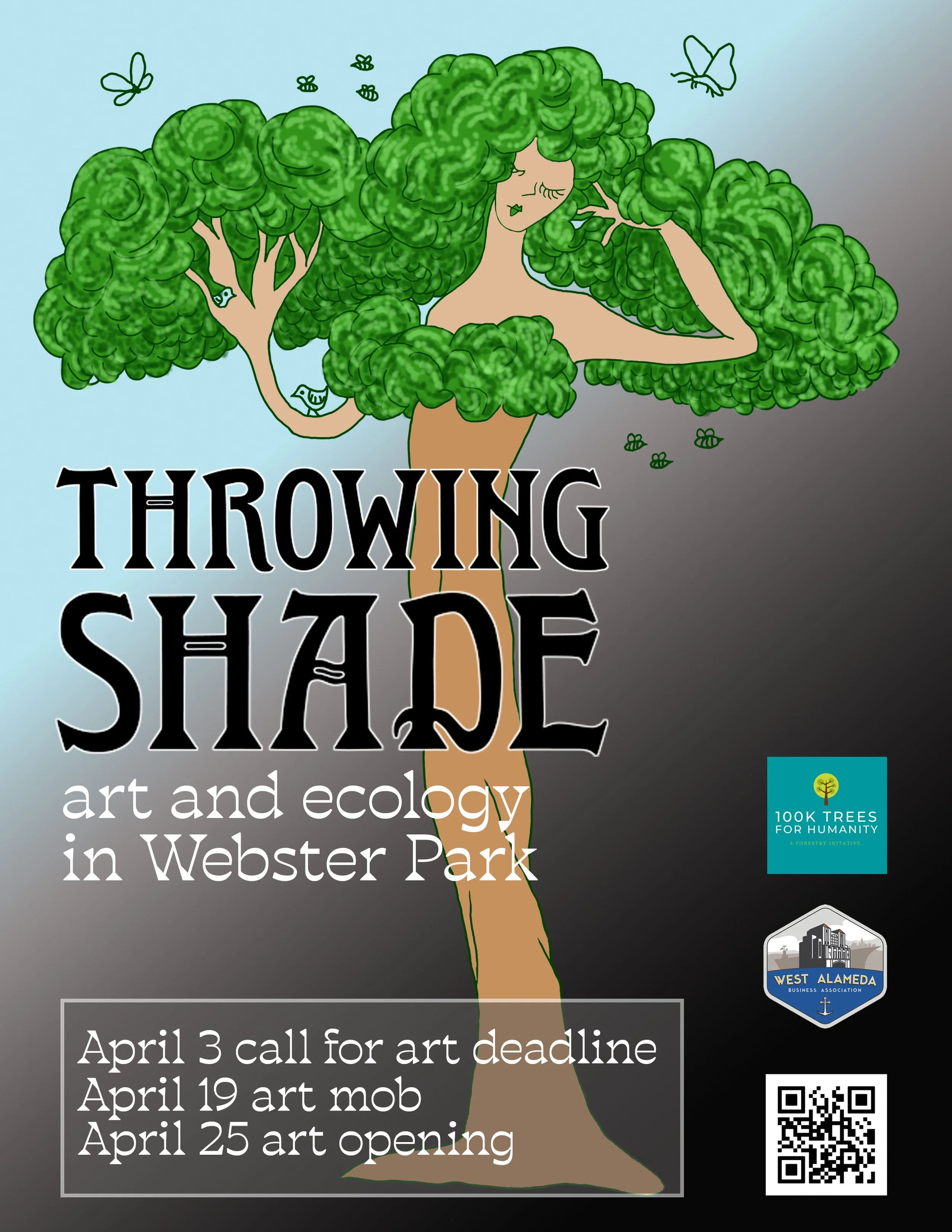 100K Trees for Humanity, along with The Creativity Center of Alameda, West Alameda Business Association, and other community groups are joining forces to invite artists to participate in a three part arts event “Throwing Shade” at Alameda’s Webster Park (1435 Webster St).